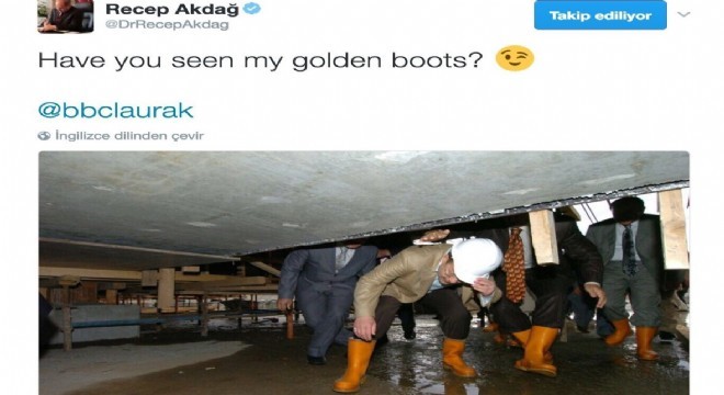 BBC muhabiri Laura Kuenssberg, İngiltere Başbakanı Theresa May'in ziyaretini takip etmek üzere Cumhurbaşkanlığı Sarayı'na gelerek çektiği fotoğrafları, "Erdoğan'ın sarayındayım, çok fazla altın var" ve “Altın asansörlerden hoşlanan bir başka dünya lideri” mesajlarıyla sosyal medyada paylaştı. Muhabirin attığı tweetlere cevap veren Bakan Akdağ, sosyal medya üzerinden yaptığı paylaşımında hastane inşaatında sarı çizmeleriyle çektirdiği fotoğrafını göstererek, “Altın çizmelerimi gördün mü?” ifadesini kullandı.