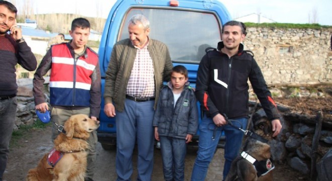 Berat Akdemir jandarma ve arama kurtarma köpekleriyle fotoğraf çektirdi. Berat, sağlık kontrolünden geçirilmek üzere ambulansla Narman Devlet Hastanesi'ne götürüldü.