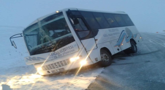 Halil İbrahim Efe yönetimindeki 25 D 9030 plakalı halk otobüsü Erzurum’a seyir halinde iken İspir yol ayrımı yakınlarında önünde seyreden TIR kayarak yolu kapattı. Otobüs sürücüsü bu sırada direksiyonu kırarak yoldan çıkıp kar birikintisine vurarak durabildi. Sürücünün dikkati olası bir faciayı önlerken, otobüste maddi hasar oluştu.