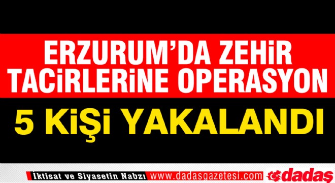 Erzurum Cumhuriyet Başsavcılığı koordinesinde, Narkotik Suçlarla Mücadele Şube Müdürlüğü zehir tacirlerine yönelik yapılan çalışmalarda uyuşturucu satıcısı olduğu tespit edilen 5 kişi yakalandı.