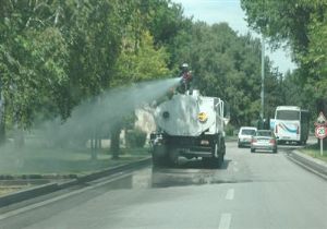 Sıcak havaların etkisini artırdığı Erzurum'da belediye ekipleri yol ortasındaki refüj ve parklarda tankerli sulama yaptılar. Sıcakların her geçen gün etkisini artırması ile vatandaşlar gölgelere kaçarken belediye çalışanları ise 26 derece sıcaklıkta tanker üzerinde yeşil alanları suluyorlar. - ERZURUM