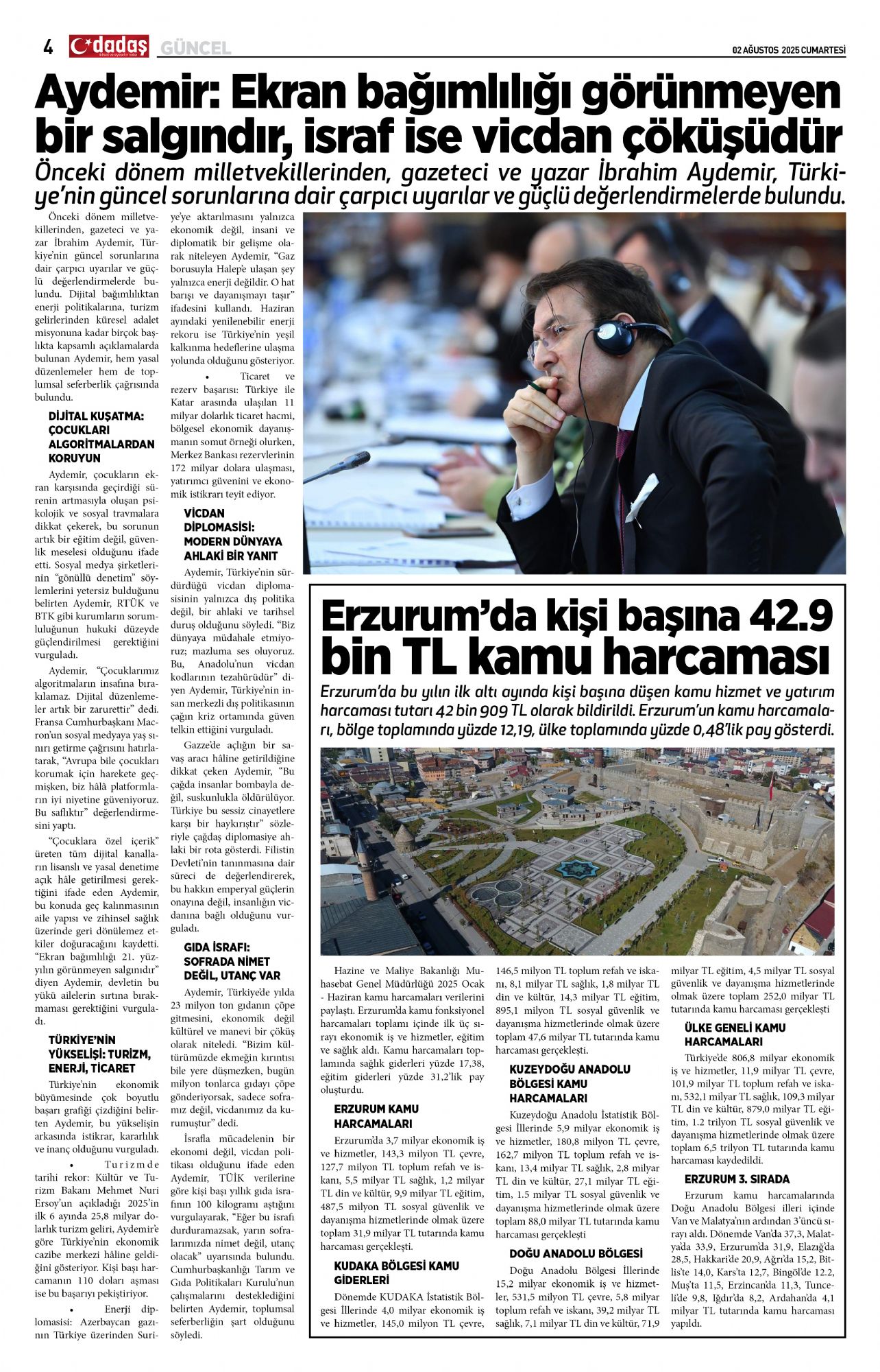 Erzurum’da kişi başına 42.9 bin TL kamu harcaması