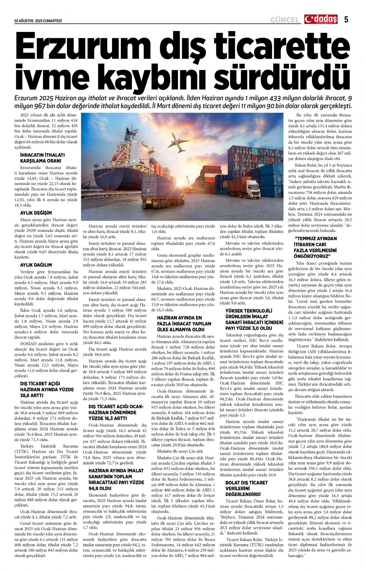 Erzurum ihracatta bölgede 5, ülkede 66'ıncı sırada