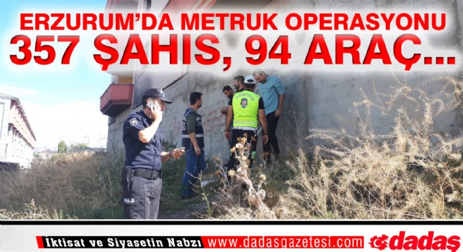 Erzurum da 20 polis ekibinin gerçekleştirdiği uygulamada Otogar, Tren Garı ve Metruk binalar tarandı. Yapılan kontrollerde 357 şahıs, 94 araç, 15 metruk binada arama yapıldı.