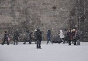 Erzurum da turistlerin kar keyfi