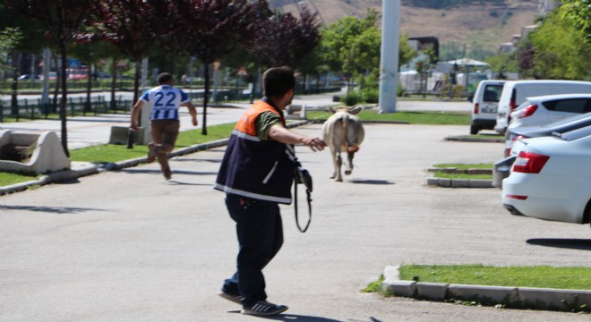 Erzurum Büyükşehir Belediyesi kurban timi firari boğayı uyuşturucu iğne ile yakaladı